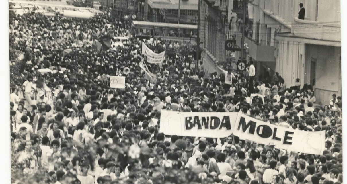 Há cinco décadas surgiu o que se tornaria o mais conhecido e tradicional pré-carnaval da capital mineira: a Banda Mole. Neste sábado, 22 de fevereiro, uma grande festa está programada para acontecer na Avenida Afonso Pena, das 14h às 22h, com programação diversificada, dois trios elétricos e um palco. Mas, quem vê toda a estrutura do bloco atualmente, não imagina que na primeira edição, em 1975, foram apenas 10 músicos no chão e cerca de 100 pessoas acompanhando o cortejo na Rua da Bahia.