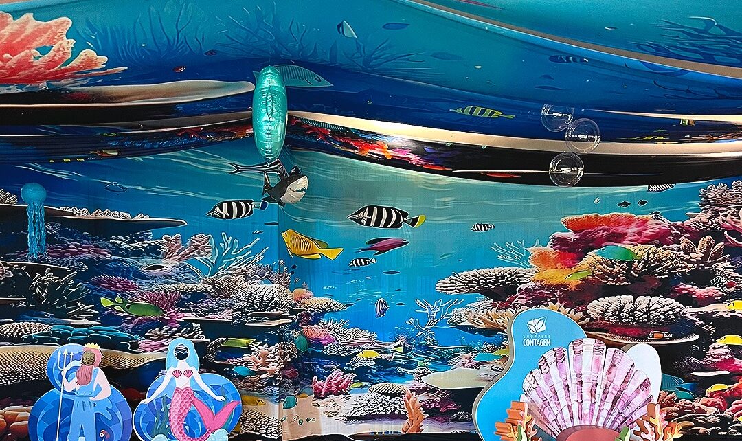O espaço montado no Piso L1 do shopping combina entretenimento e aprendizado, oferecendo uma oportunidade única de conhecer mais sobre a vida marinha e sua importância para o equilíbrio ambiental.