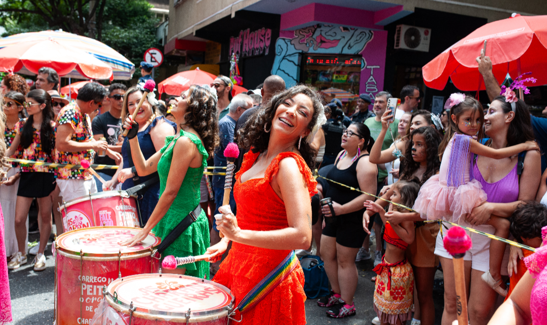 Formado exclusivamente por mães, o bloco virou referência no pré-carnaval da capital mineira por unir bateria feminina, repertório para todas as idades e um clima de festa familiar. Criado em 2014 por um grupo de 15 mães que buscavam um espaço seguro para tocar e levar os filhos, o coletivo cresceu e hoje reúne cerca de 60 integrantes, reafirmando em 2026 a mensagem que guia o desfile: “Carnaval é coisa de mulher”.