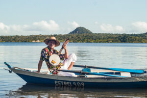 Tanto em Minas quanto no Pará, são os mestres da cultura popular que sustentam, transmitem e atualizam saberes que atravessam gerações. O Festival reforça essa presença ao trazer quatro mestres paraenses para Belo Horizonte e promover trocas diretas com referências locais. De Alter do Chão (PA), participam o Mestre Hermes Caldeira, do grupo Kuatá de Carimbó; o Mestre Paulinho Barreto, do grupo Tatu Kanastra; o Mestre Duka, conhecido como Duka do Sax; e a Sereia Rayla Borari, do Grupo Tatu Kanastra, uma bailarina que representa o encanto amazônico através da dança do carimbó.