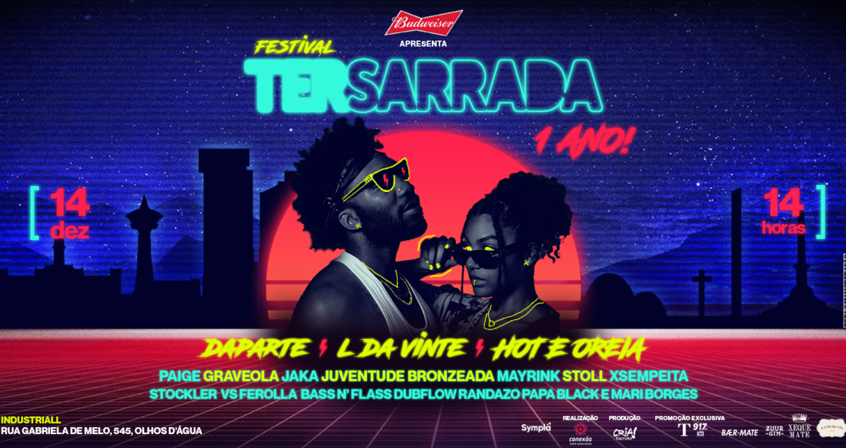 Neste sábado, 14 de dezembro, a festa Tersarrada comemora 1 ano de existência com um evento de 16 horas de duração, que contará com alguns dos maiores nomes da nova música mineira. Conhecida por agitar as noites de terça-feira no Distrital com o melhor do funk, eletrônico, pop e rock, promoverá um grande festival de música, experiências e valorização da cultura urbana da capital. Com um line composto apenas por atrações mineiras, a Tersarrada promete surpreender a todos.