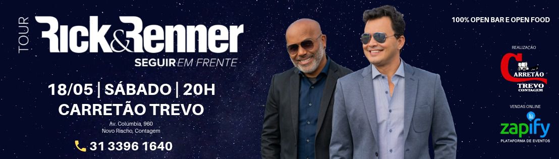 Os artistas garantem uma noite inesquecível para os fãs. Sucessos conhecidos nos 26 anos de carreira, como, “Nos Bares Da Cidade”, “Quem Chorou Fui Eu”, “Filha”, “Ela É Demais”, “Eu Mereço”, “Paixão de Peão” e “Muleca” serão relembrados pelos irmãos na apresentação. O show da dupla Rick e Renner é uma realização do Carretão Trevo com produção da Horta Produções e Eventos.